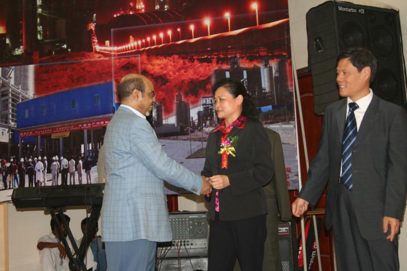 2011年6月25日,在合肥院總承包的埃塞俄比亞Messebo水泥廠竣工典禮上,埃塞總理梅勒斯與建材總院總經(jīng)理姚燕親切握手。合肥院在非洲市場承接多個水泥生產(chǎn)線項(xiàng)目,廣受客戶好評。